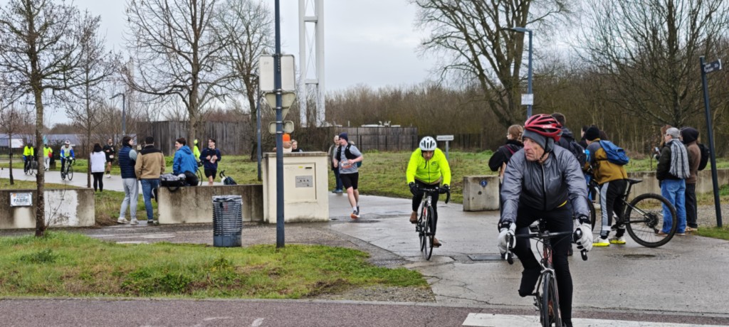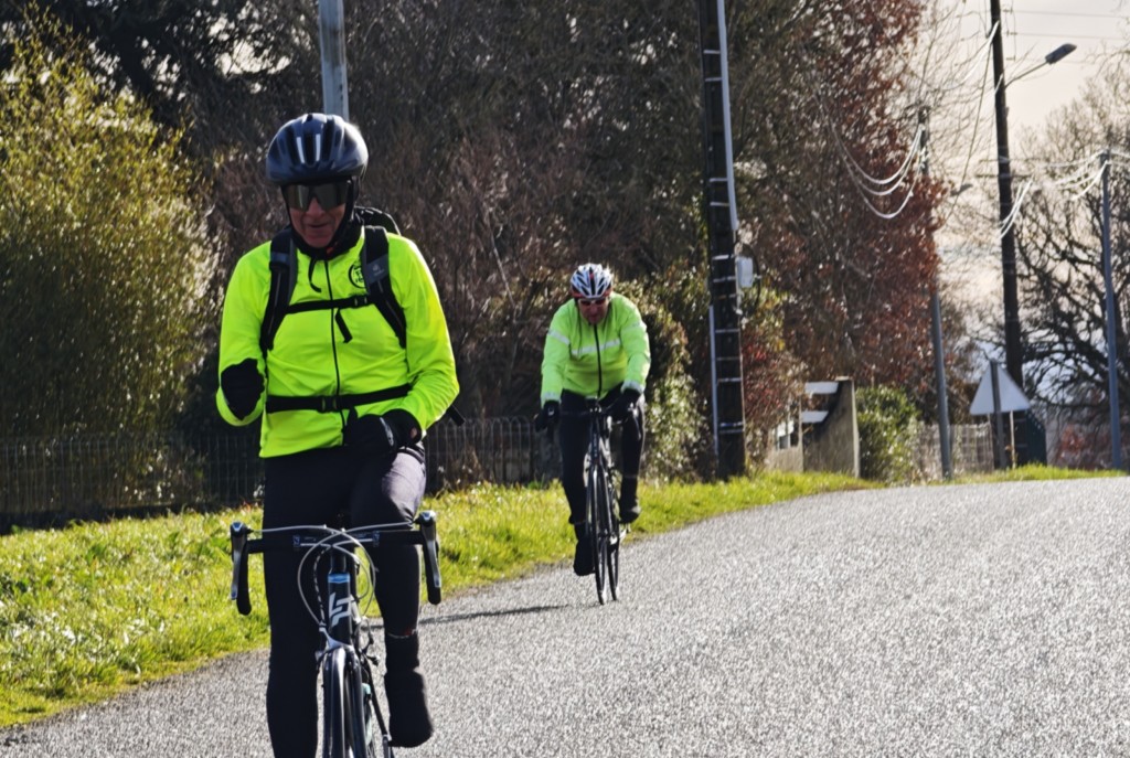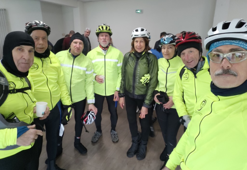 Les mêmes causes produisant les mêmes effets, nos huits Cyclos avaient unanimement choisi les mêmes effets personnels pour être vus par l’ épais brouillard qui imposait un environnement froid et humide.Mais équipés des coupes vents jaune fluo, objet de la dotation vêtement 2025 de notre club, nos cyclos ont démontré leur intérêt à assurer la sécurité de notre sortie.