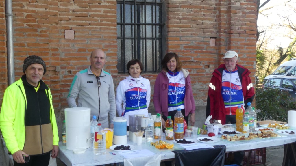 Ayant bénéficié des dernières informations du canton de la part de l’aubergiste, toujours enclin a les partager, nous l’avons sollicité pour la photo souvenir (sur la rue pour éviter le parking…) et via la côte du pigeonnier nous avons regagné, heureux et détendus, Blagnac pour midi.