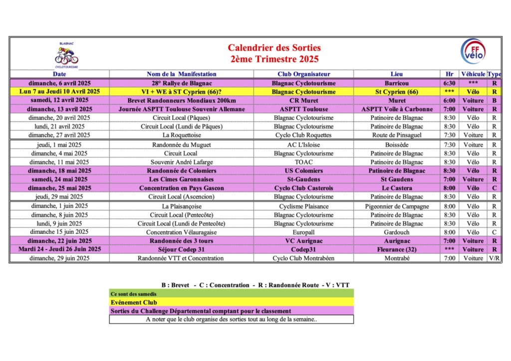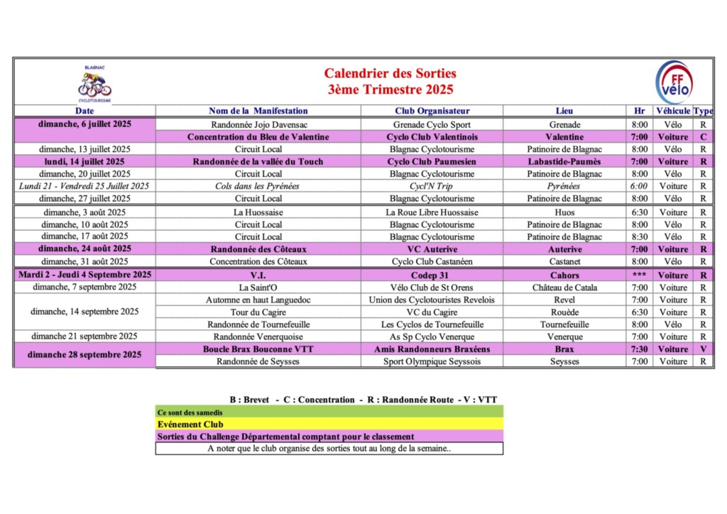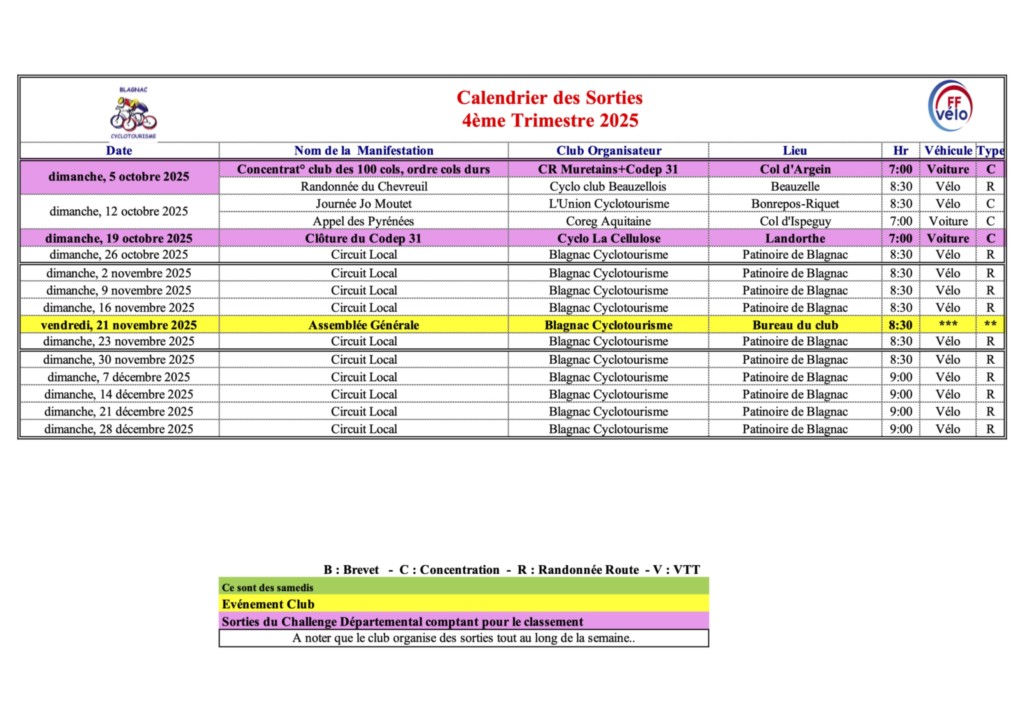 Depuis le 1er Septembre 2025, les Départs se font depuis la Mairie de Blagnac.